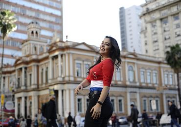 Larissa Riquelme desfila sua beleza nas ruas de Porto Alegre