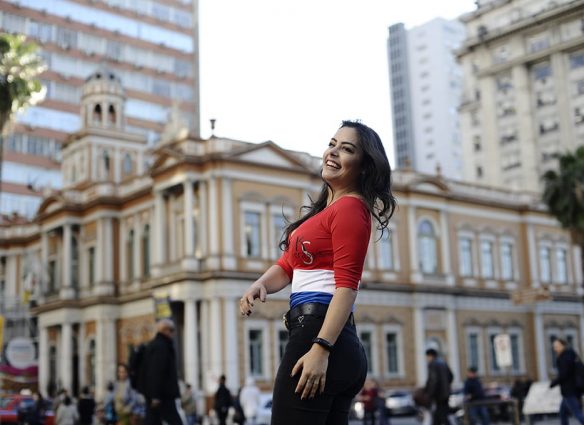 Larissa Riquelme desfila sua beleza nas ruas de Porto Alegre